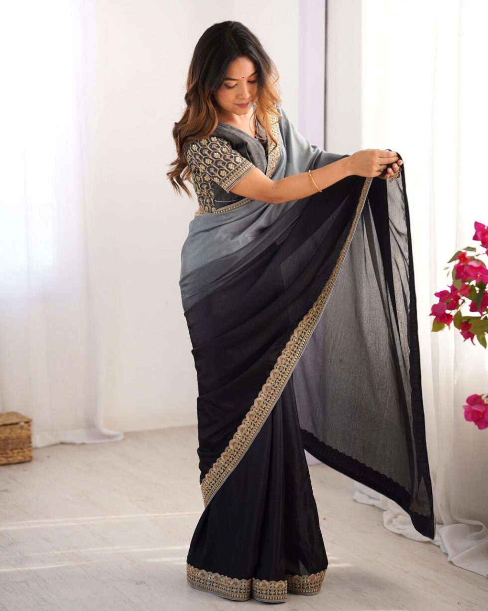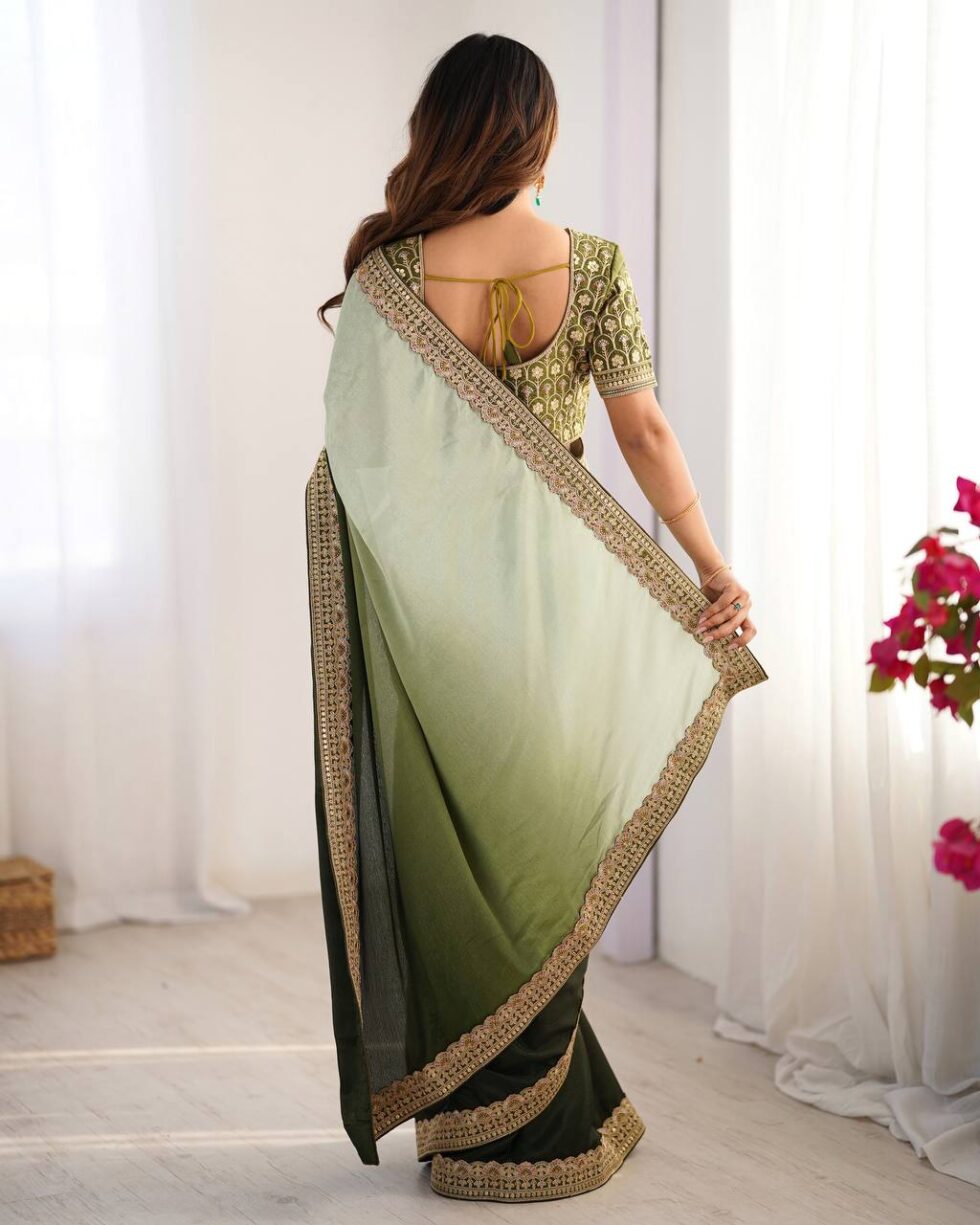 Women’s Elegant Ombre Green Georgette Saree with Intricate Golden Zari & Stone Embellishments – Complete with Heavily Worked Blouse for Festive & Wedding Wear 🇮🇳 ₹4,399.00