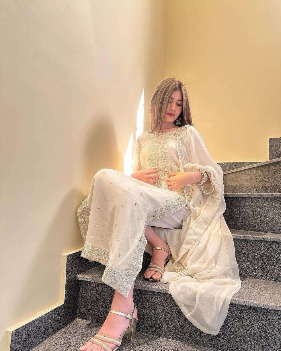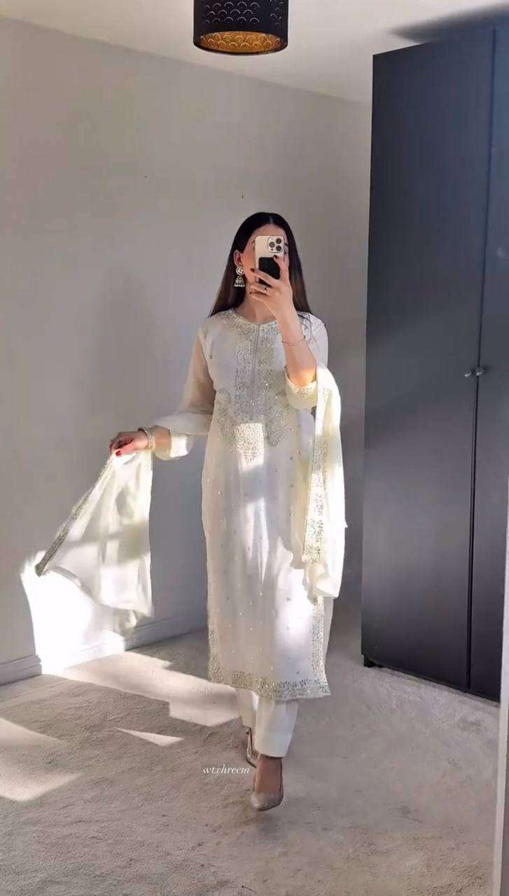 Women’s Georgette Embroidery Sequence Work with Rivet Moti Work Straight Kurti With Pant and Dupatta Set 🇺🇸 US$215.95